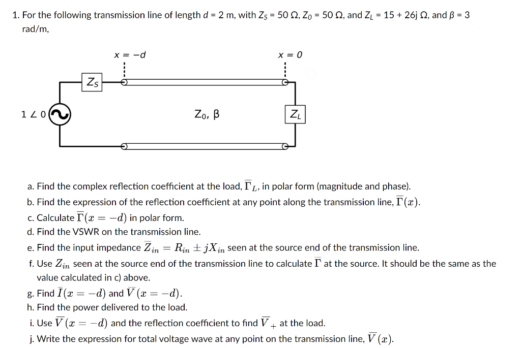Solved 1. For the following transmission line of length d =